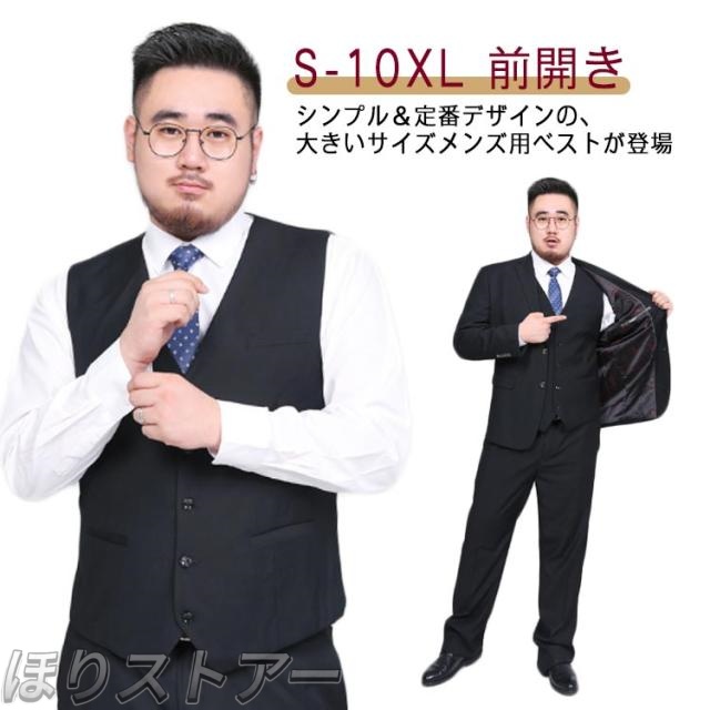 スーツ パーティー メンズ ベスト 結婚式 紳士 前開き フォーマルベスト ビジネス 大きいサイズ ブライダル ベスト 二次会 ノーカラー 黒 ブラック