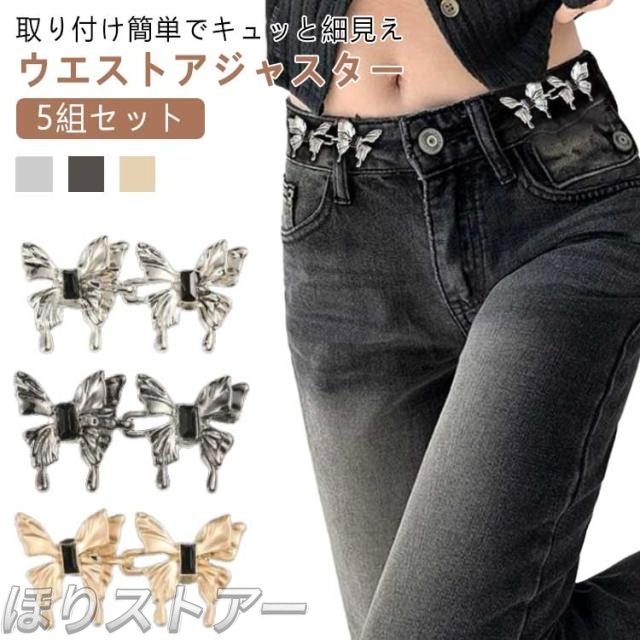 5組セット クリップ ウェスト調整アジャスター 調整 アジャスター 調節 金具 ウエストアジャスター ウェスト バックル ウエスト調整ボタン ズボン ジーンズ 縮める ピン 蝶型 ウエストバックル ガーメントボタン サイズ調整