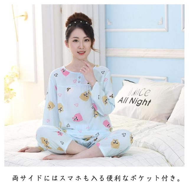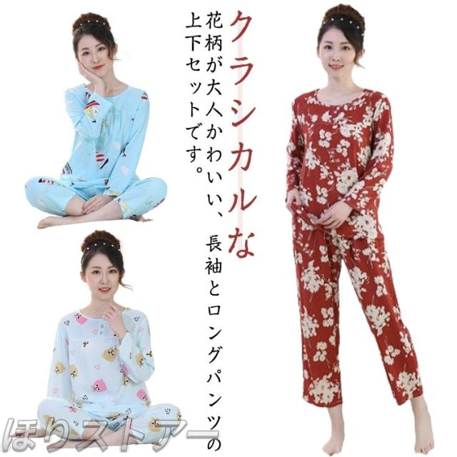 夏服 長袖 女性 ギフト レディース 丸首 春 ルームウェア トップス 総柄 tシャツ セットアップ 服 大人 パジャマ シニア 夏 秋 薄手 部屋着 プルオーバー 2点セット 花柄 レディースパジャマ おしゃれ 祖母 おばあちゃん