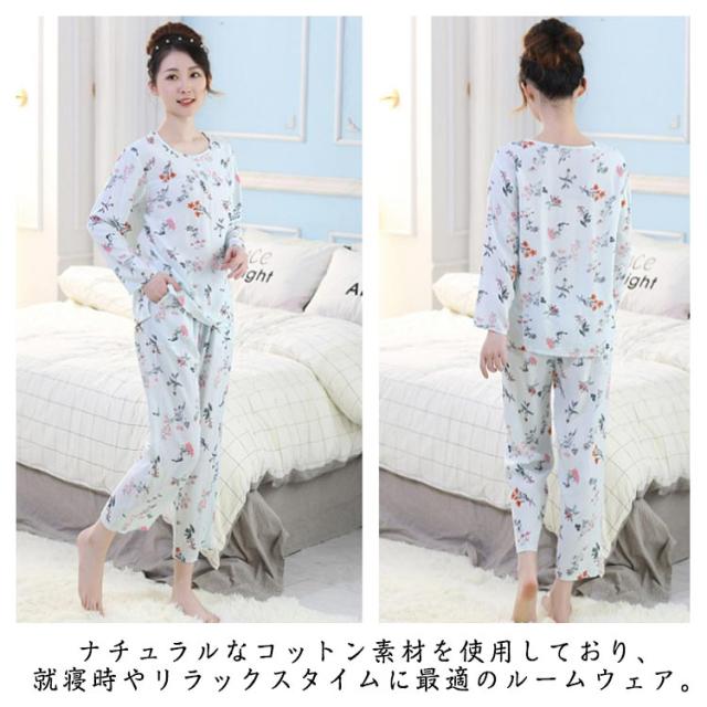 | クラシカルな花柄が大人かわいい、長袖とロングパンツの上下セットです。 ナチュラルなコットン素材を使用しており、就寝時やリラックスタイムに最適のルームウェア。 ゆったりとしたサイズ感で、快適なくつろぎ時間をサポートします。 パンツは総ゴムウエストでストレスフリーな着用感。 両サイドにはスマホも入る便利なポケット付き。 綿は吸放湿性のある素材で汗をかきやすい季節も快適に着用頂けます。 薄手ながら透けないのも嬉しいポイントです。 見た目のおしゃれさだけでなく、素材や着心地にこだわったルームウェアです。 | |