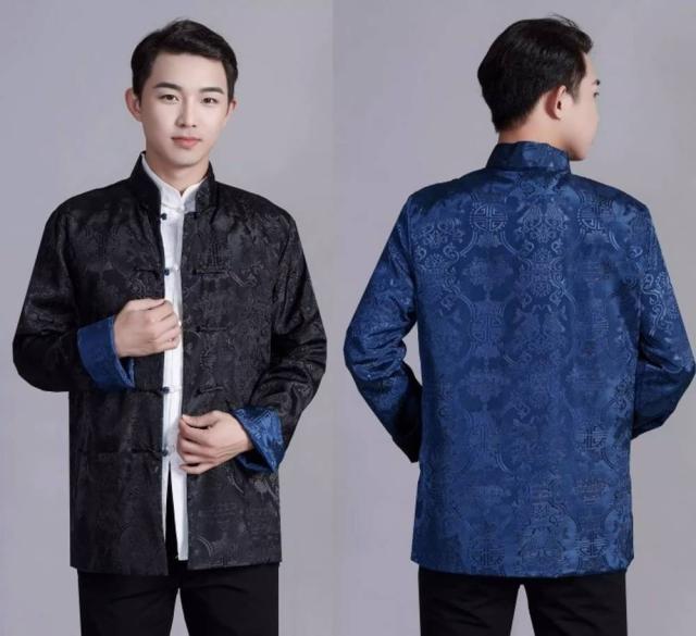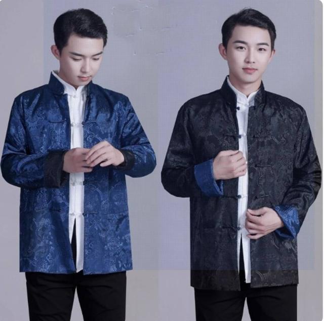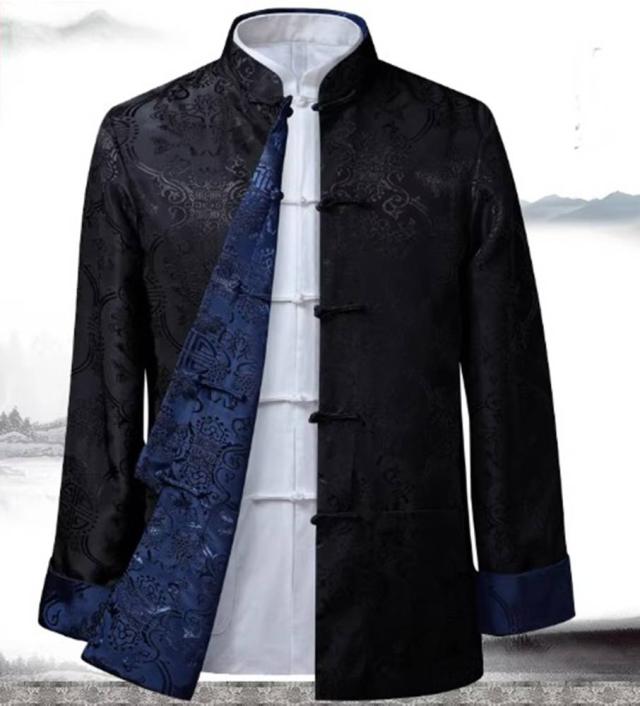 唐人服 功夫長袖 リバーシブル カンフージャケット 黒色+紺色
