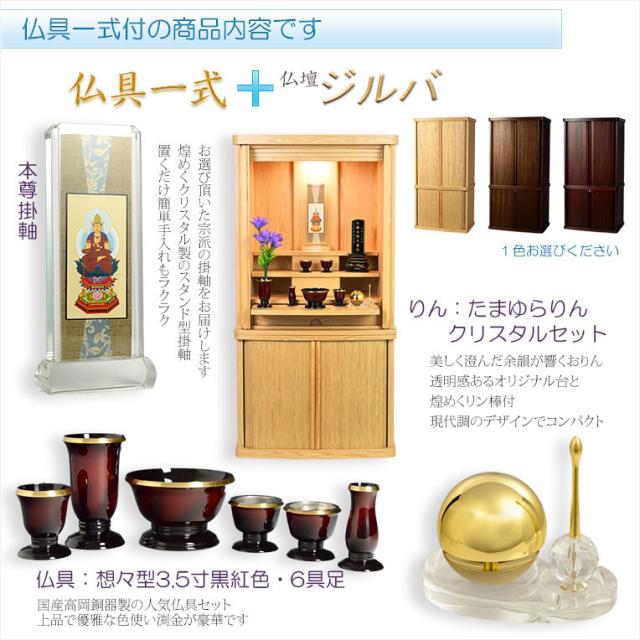 必要な仏具が全て揃って届く、便利な【仏具一式付き仏壇ジルバセット】