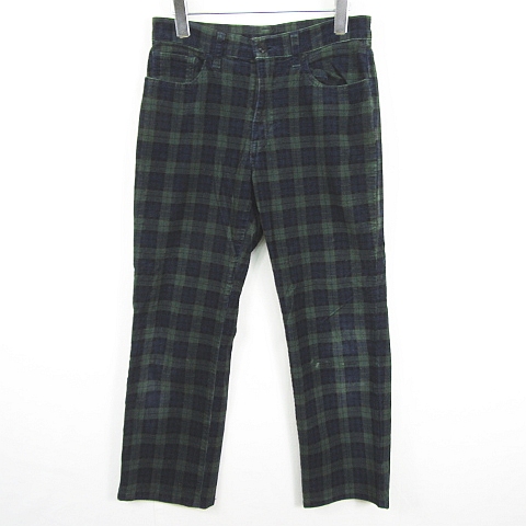 【中古】ドミンゴ Domingo SIMPLICITY コーデュロイ パンツ ストレッチ 綿 L グリーン ブルー チェック