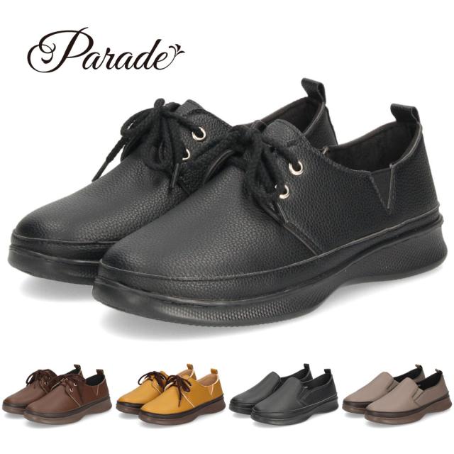 カジュアルシューズ レディース スリッポン きれいめ 軽量 シンプル ローカット レースアップ 履きやすい 歩きやすい かわいい 通勤 通学 クッション性 パレード 2345 2251 Parade