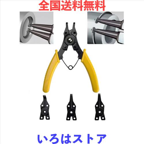 スナップリングプライヤー 工具 セット - 高炭素鋼鍛造 4種類の交換用ヘッド付き プライヤー 工具 スプリットリング プライヤー カプラー