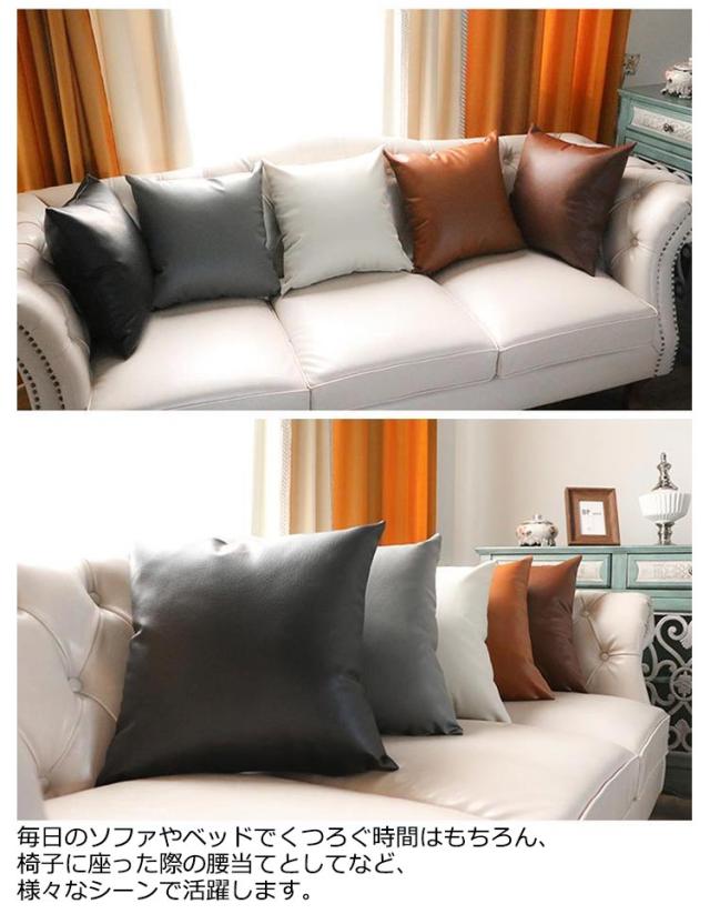クッションカバー レザー 背あてクッションカバー 45×45cm フェイクレザー ファスナー開閉式 無地 PU 合皮 合成皮革 汚れ防止 防水 撥水 無地 かっこいい おしゃれ 北欧 モダン ヴィンテージ風 模様替え 春 夏 秋 冬 送料無料 ギフト プレゼント 引越し祝い 新居