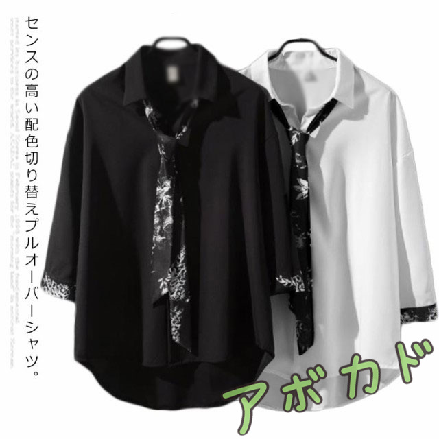 送料無料 プルオーバー シャツ メンズ 長袖 トップス リボンネクタイ付き カジュアルシャツ 春夏 新作 韓国ファッション おしゃれ ストライプ 花柄 原宿系 モダン