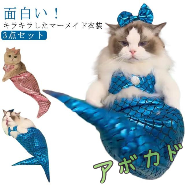 | 面白い!キラキラしたマーメイド衣装3点セット、まるで本物の人魚のように見えます、猫ちゃんの愛らしさを一層引き立てます。 柔らかいポリエステル生地で作られた猫用マーメイドコスチュームは快適な着用感を提供し、ご愛猫と水中での遊びや写真撮影を快適に楽しもう? 愛猫をより可愛く魅力的にさせましょう。日頃の遊び、写真撮影、ハロウィーン、テーマパーティー、誕生日に最適で、特別な日のためのコスチュームとしても最適です。 | |