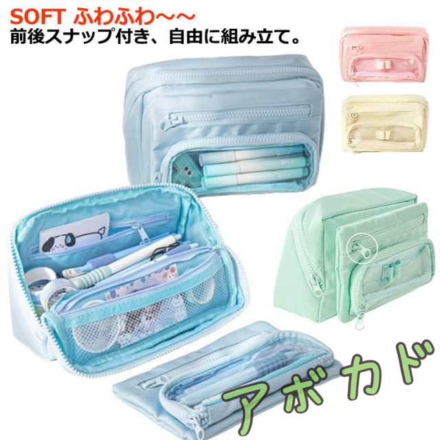 ペンケース 大容量 シンプル ジップボックス ペンポーチ おしゃれ 淡色 くすみカラー 筆箱 ポーチ型 トレー型 取り外し小物入れ ペン100本収納可 多機能 男の子 女の子 キュービックス 文具 小学校 高学年 中学生 大学生 大人 韓国 カラバリ 送料無料
