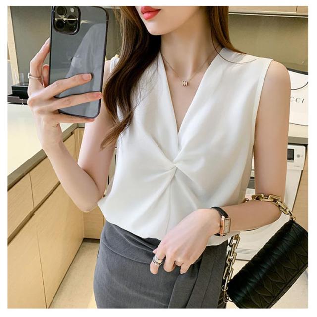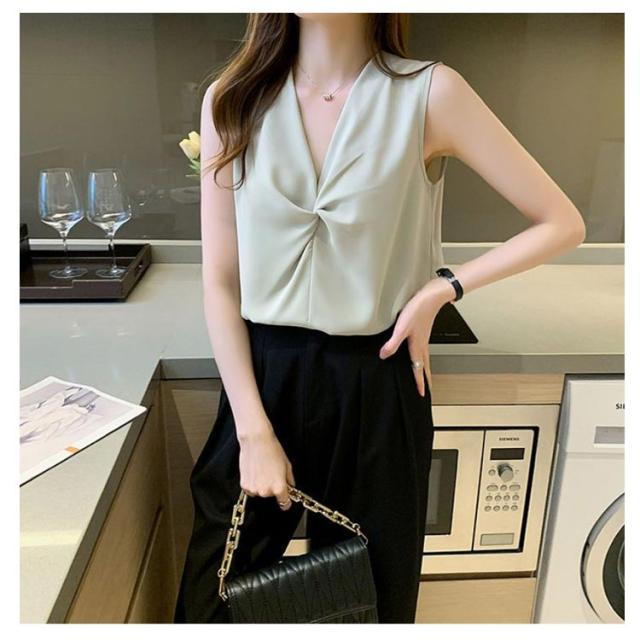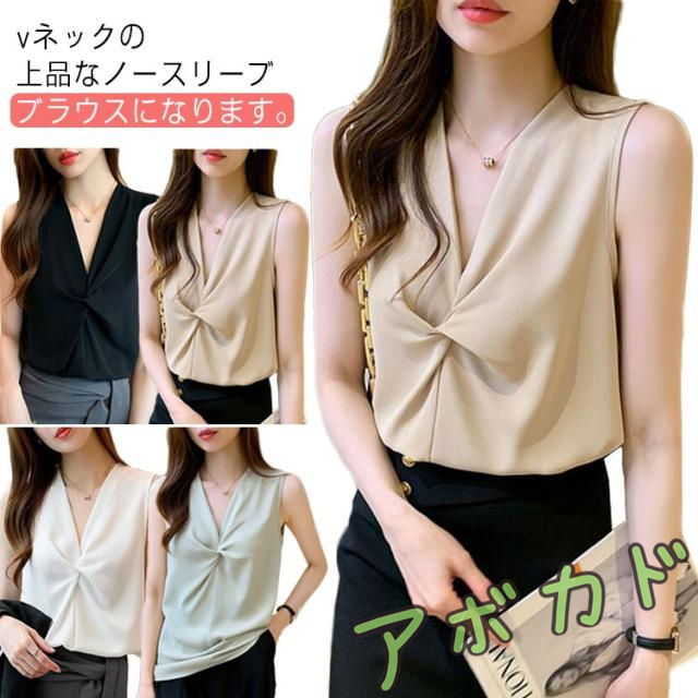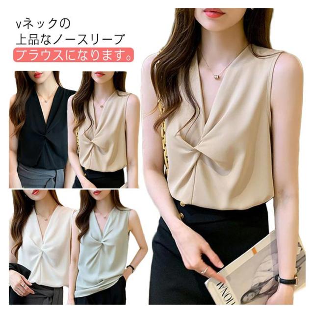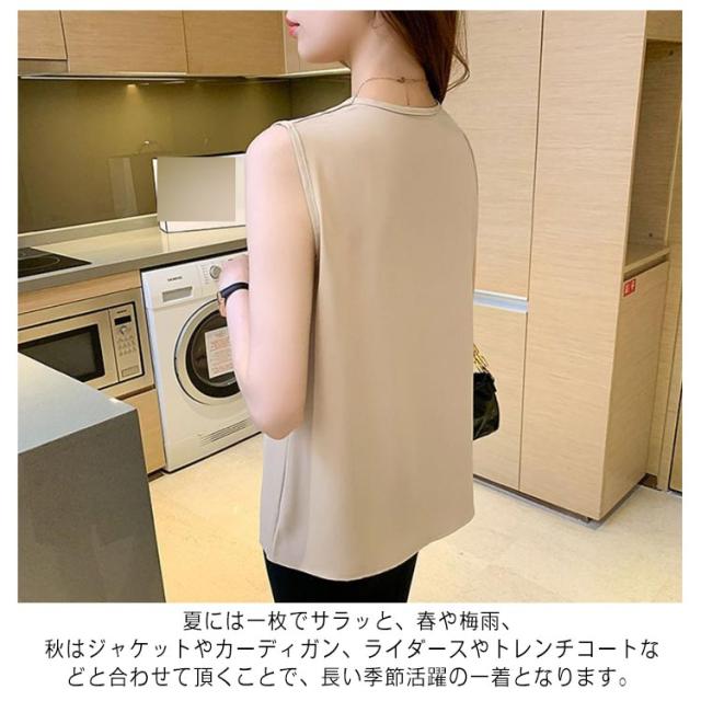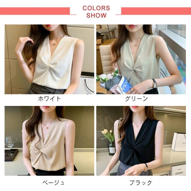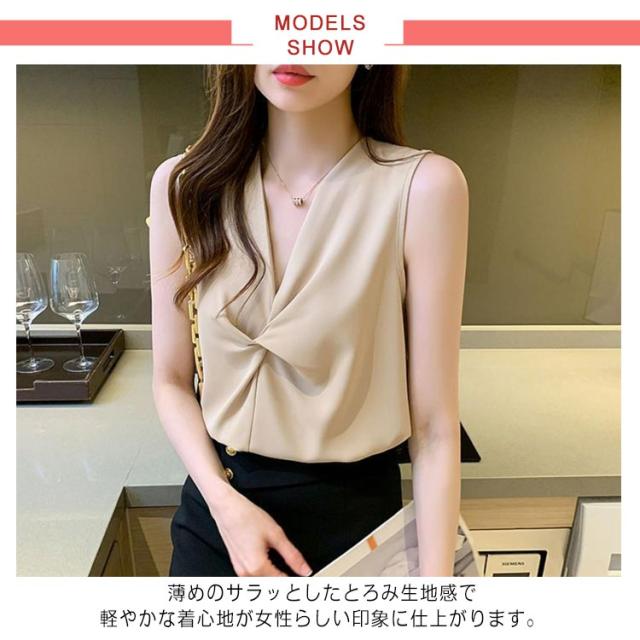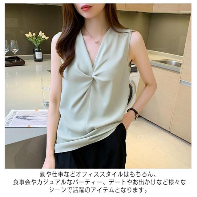 Vネック ノースリーブ シャツ レディース トップス ブラウス 送料無料 袖なし タンクトップ サテン感 春夏 軽い素材 かわいい シフォン 大きいサイズ ゆったり おしゃれ 大きいサイズ シンプル