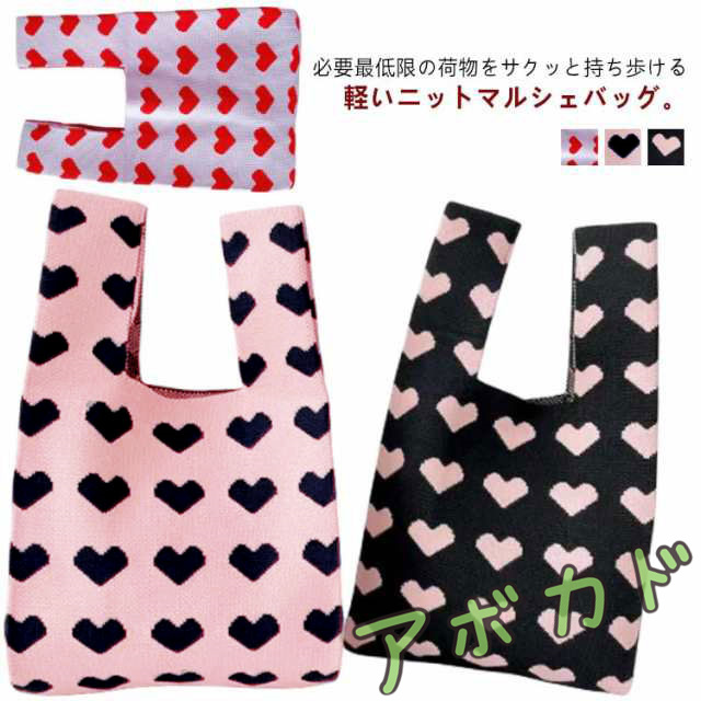 ニットバッグ ニット トートバッグ マルシェバッグ 縦型 ハート かぎ針 ハンドバッグ 韓国 レディース ミニバッグ ミニトートバッグ 小さめ エコバッグ サブバッグ SNS人気 おしゃれ オールシーズン 送料無料