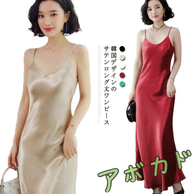 | 韓国デザインのサテンロング丈ワンピース。 Vネックに華奢な肩紐のキャミソールワンピース。 光沢感のある上品なサテン素材でひらひらとエレガント。 春にはレースインナーとコーデして、様々なコーディネートに使えるアイテムです。 | |
