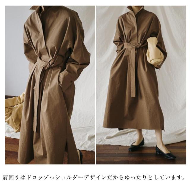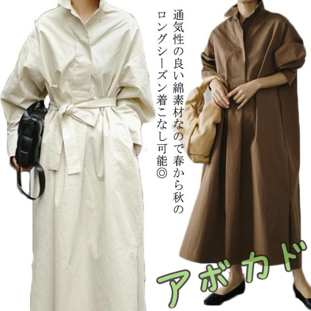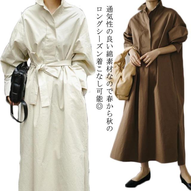 Vネック シャツワンピ レディース 長袖 長袖ロングシャツワンピース 春夏秋 スリット ロングワンピース マキシワンピース マキシワンピ ロングワンピ コットン100% キッパー シャツ ワイド ゆったり カジュアル きれいめ 綿100% ワンピース