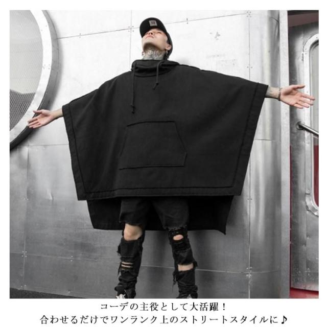 ビッグポンチョパーカー ロングパーカー ドルマン プルオーバー フード付きポンチョ ビッグシルエット 羽織 ライトアウター メンズ レディース マント ケープ モード系 ストリート 個性的 原宿系 エストール