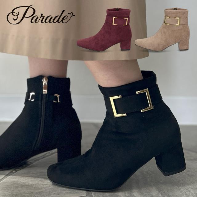 ショートブーツ レディース ブーツ 靴 スエード調 バックル ファスナー付き 履きやすい 歩きやすい ワイン 黒 オーク チャンキーヒール ヒール 5cm パレード 52903 Parade