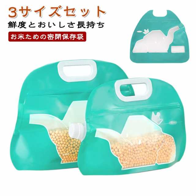 保存 米収納 お米保存袋 米びつ 米櫃 3サイズセット 保管 ライスストッカー お米保存袋 湿気 防止 密封 キッチン 持ち手付き 保存 チャック付き 保管 新米 玄米 雑穀米 無洗米 野菜室 冷蔵庫