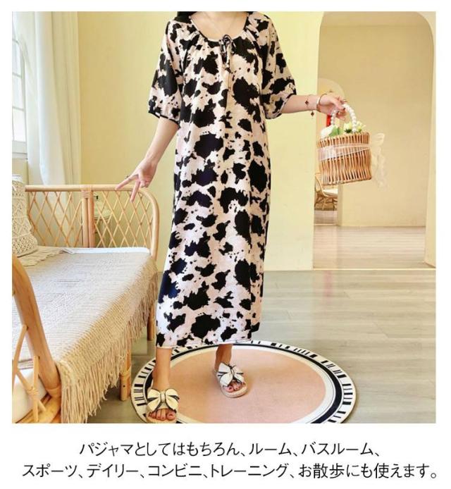 パジャマ ワンピース レディース 夏用 花柄 五分袖 半袖ワンピース ルームウェア 部屋着 寝間着 軽い ロング丈 サマー 涼しい マタニティ 女性用 可愛い 快適 さらさら ゆったり 柔らかい カジュアル 夏 送料無料