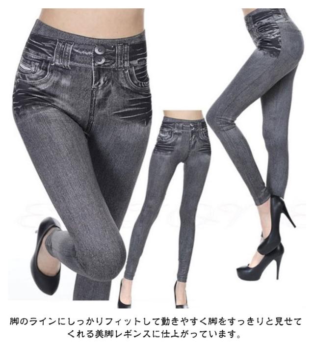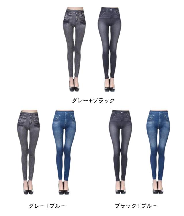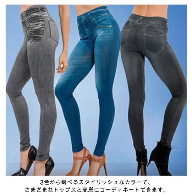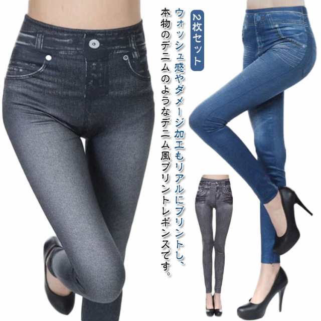 パンツ ストレッチ 2枚セット レギンス ロング丈 大きいサイズ デニム風レギンス ゴルフ レディース スパッツ 美脚 レギパン スキニー ボトムス ハイウエスト スキニーパンツ 2枚セット フェイクポケット スポーツ スリム ヨガ ダンス 薄手 春 夏 秋