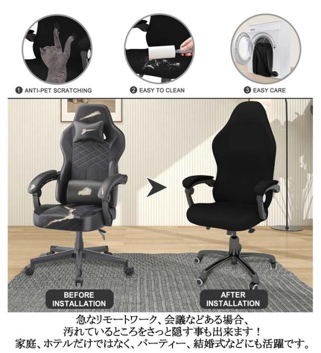 | 【4点セット】【防水生地】 ストレッチ性能抜群、丈夫で多様な形の分体式オフィスチェアカバー。 肌触りも良く快適にお使いいただけます。 急なリモートワーク、会議などある場合、汚れているところをさっと隠す事も出来ます! 家庭、ホテルだけではなく、パーティー、結婚式などにも活躍です。 | |