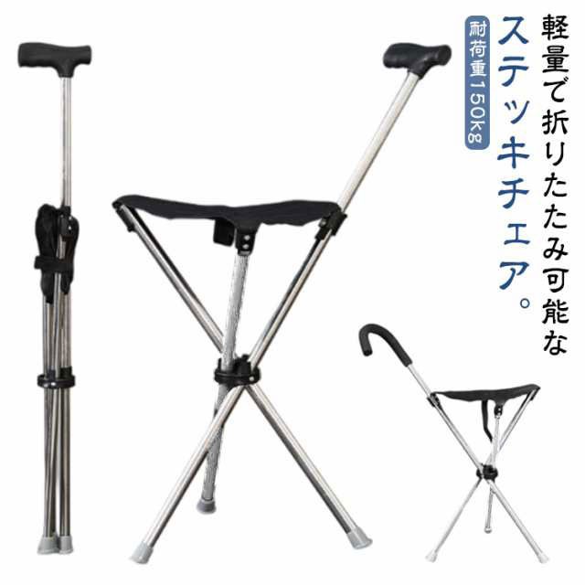 ステッキチェア 折り畳み ステッキ チェア 耐荷重150kg 介護 お年寄り 高齢者 三脚 杖 ステッキ チェアー 軽量 折りたたみ イス ステッキ チェアー 3本脚 休憩 男性 女性 メンズ レディース 座れる杖 座れるステッキ 歩行補助杖 軽量 コンパクト 敬老の日 ギフト プレゼント
