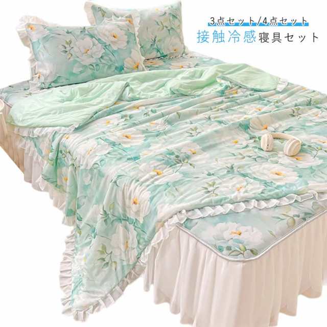 涼しい 寝具 セット 4点セット 枕カバー 接触冷感 シーツ シングル ダブル 接触涼感 洗える 夏布団 接触冷感 ベッドスカート 3点セット クール ケット タオルケット 肌掛け 肌布団 夏用 エコ