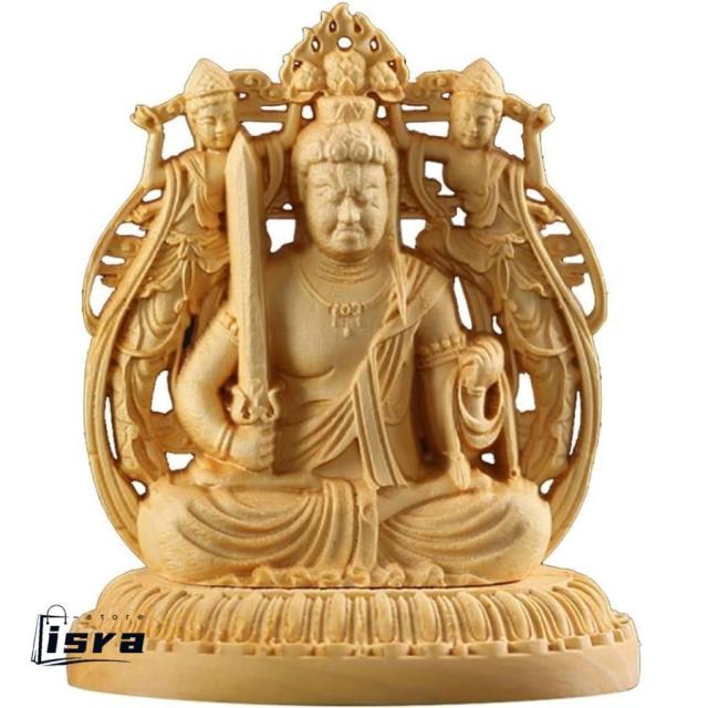 両面彫刻 ツゲの木彫り 仏像 不動明王 開運/厄除け