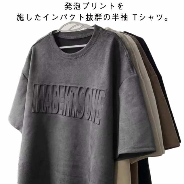 メンズ 半袖 Tシャツ エンボス加工 オーバーサイズ Tシャツ 大人 ロゴ カットソー クルーネック トップス プルオーバー 半袖Tシャツ ゆったり シルエット 大きい 大きめ メンズファッション 型押しエンボス 30代 40代 50代 春