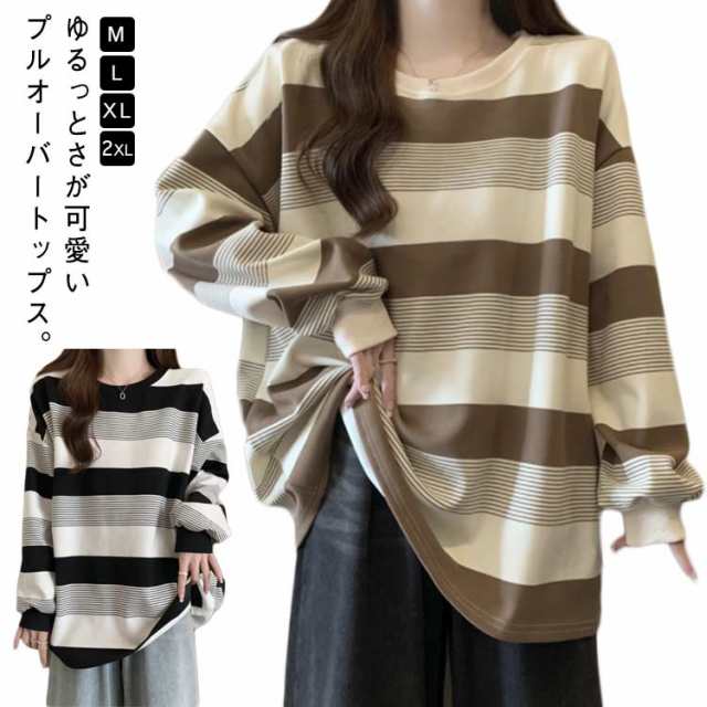 オーバーサイズ ゆったり ロングTシャツ お洒落 ゆるっと ゆったり 韓国 トップス レディース カットソー ロンT 韓国 春 秋 長袖tシャツ リラックス シンプル 春秋服 体型カバー 大きいサイズ カジュアル