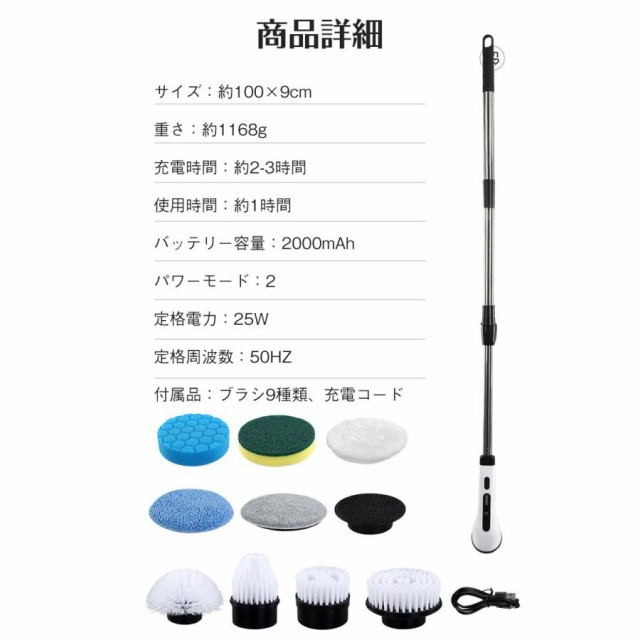 【キーワード】電動ブラシ 掃除用 車掃除 電動 9種類 付替えブラシ ワックス お風呂 バス ポリッシャーワイヤレス ハンディ 柄付ブラシ マルチブラシ 軽量 掃除 掃除ブラシ コードレス お風呂掃除 充電式 60分稼働 長さ調整可能 角度/速度調整 組み立て簡単 手持ち 回転