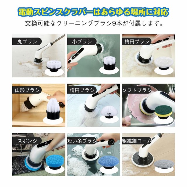 電動ブラシ 掃除 車掃除 電動 9種類 付替えブラシ 充電式 お風呂 バス ポリッシャー ハンディ 柄付ブラシ マルチブラシ 掃除ブラシ 長さ速度調整