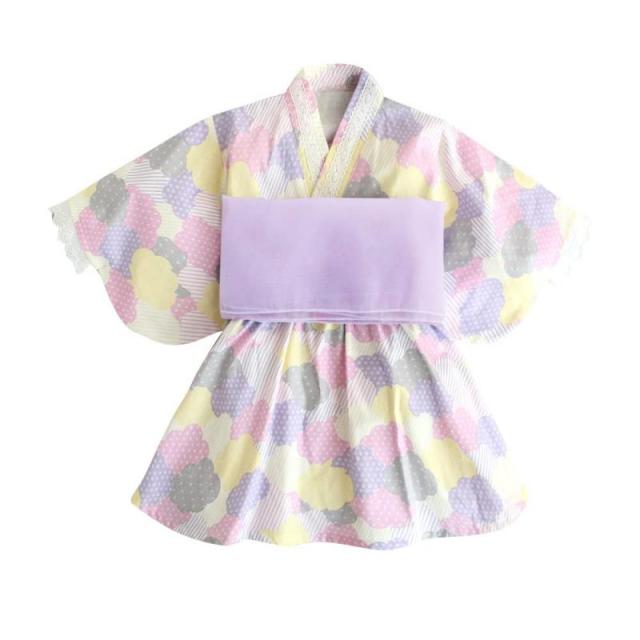 [SLINX] 浴衣 子供 女の子 ベビー キッズ 夏祭り 夏 和装 ゆかた こどもゆかた 2点セット 帯セット ワンピース 兵児帯付 浴衣ドレス 花火大会 HF01 (100, パープル)