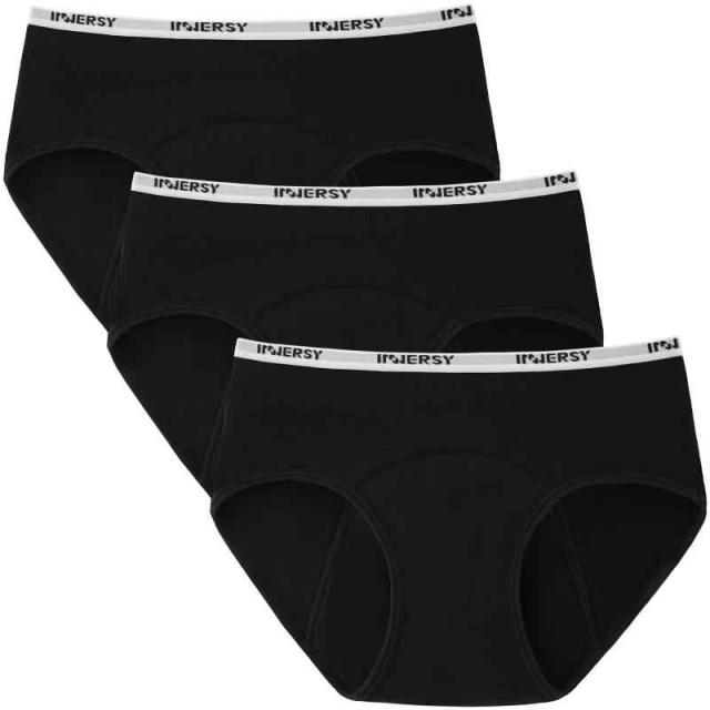 [INNERSY] サニタリーショーツ ジュニア 生理用ショーツ 下着 ガールズ 綿 生理用パンツ 女児 娘 生理用品 可愛い ローライズ インナー ショーツ 防水シート 通気性 漏れ防止 昼夜用 下着 3枚セット 150-165 (150, ブラック系)