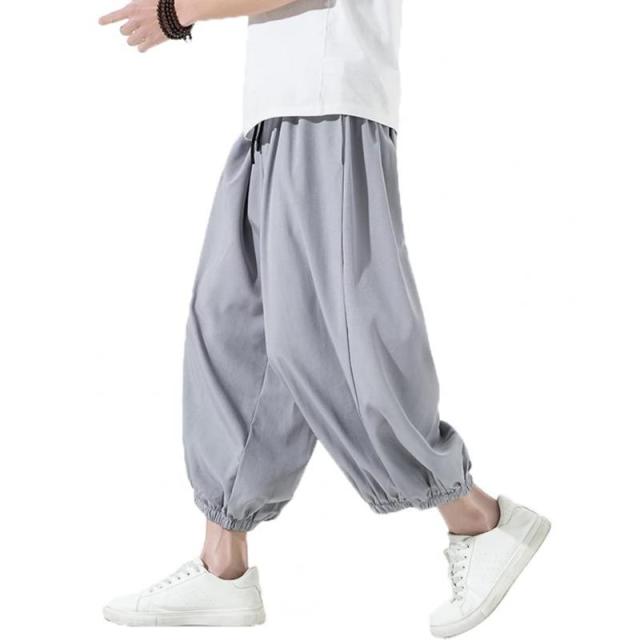 MAIOULE サルエルパンツ ワイドパンツ メンズ 春 夏 秋 冬 ゆったり ビッグシルエット 薄手 ゆるゆる 無地 ロング丈 オーバーサイズ 6色ゴム紐付き M-5XL大きいサイズ ルームウェアMXY06 (グレー, 2XL)
