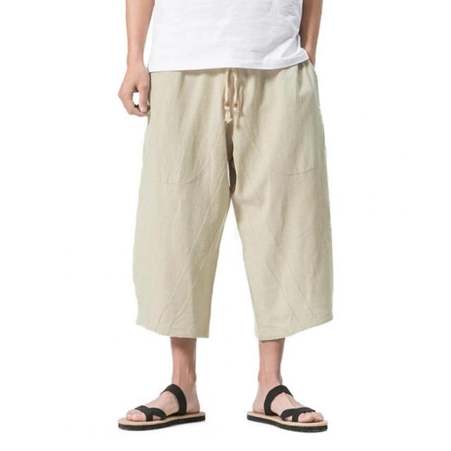 [FOMANSH] ワイドパンツ メンズ サルエルパンツ 綿麻 大きいサイズ 無地 カジュアル ガウチョパンツ 7分丈 ゆったり 夏 (ベージュ, XL)