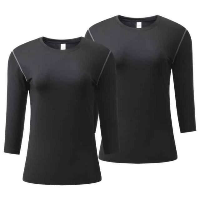 [Guooolex] スポーツインナー レディース 7分袖 冷感インナー 2枚セット コンプレッションウェア 加圧シャツ スポーツシャツ アンダーウェア コンプレッショントップス 吸汗速乾 (ブラックX2, M)