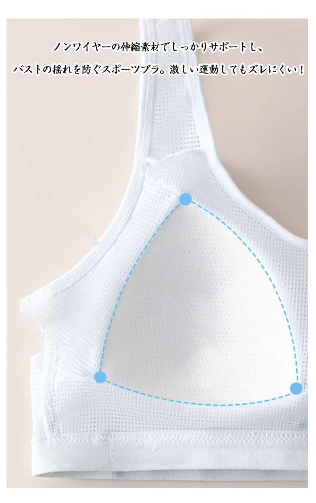 | しっかりホールド、インナーとしてもアウターとしても使えるスポーツブラ。 ノンワイヤーの伸縮素材でしっかりサポートし、バストの揺れを防ぐスポーツブラ。激しい運動してもズレにくい! 軽くて柔らかい、伸縮性に優れ、型崩れしにくい、どの形のバストにもぴったりフィット! ホックの無いかぶりタイプなので着脱もらくちんです。 スポーツに集中した女の子におすすめのスポブラです。 運動、部活、スポーツ、ダンス、普段着、睡眠時など非常に快適に過ごすことができる。 春夏秋冬、季節や流行りを問わず1年中を通して長くお使いいただける商品になっております。 | |