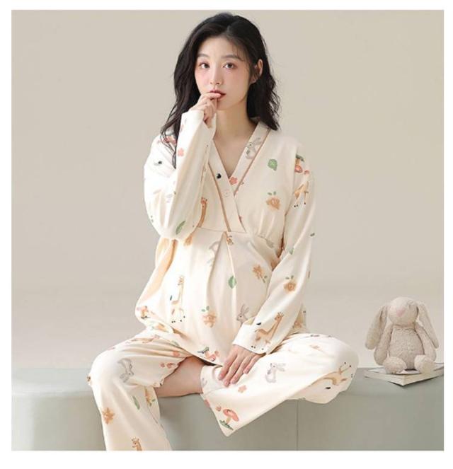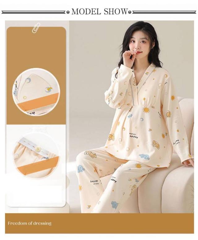 カップ付き Vネック パジャマ 綿 マタニティ 上下セット マタニティ 長袖 授乳 コットン 部屋着 授乳服 寝巻き 入院 出産 産前産後 春 夏 秋 出産祝い