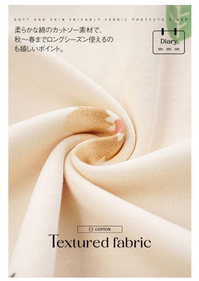 | ?ズレないカップ付きルームウェア上下セット ?柔らかな綿のカットソー素材で、秋?春までロングシーズン使えるのも嬉しいポイント。 ?着心地快適で、見た目も可愛いおしゃれなルームウェアは、急な来客でも安心です? | |