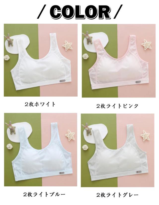 中学生 揺れない 2枚セット ジュニア ブラジャー スポーツブラ スポブラ ジュニアブラ メッシュ 通気 キッズ ハーフトップ 中学生 高校生 思春期 小学生 下着 女子 2枚セット ファーストブラ ジュニアブラ 体操 体育 ノンワイヤー 肌着 春 夏 秋