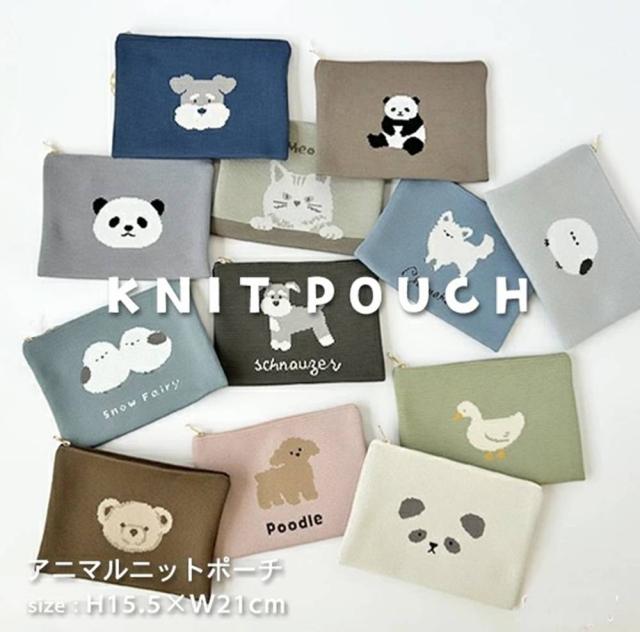 優しい風合とかわいいデザインが魅力のアニマルニットポーチ。