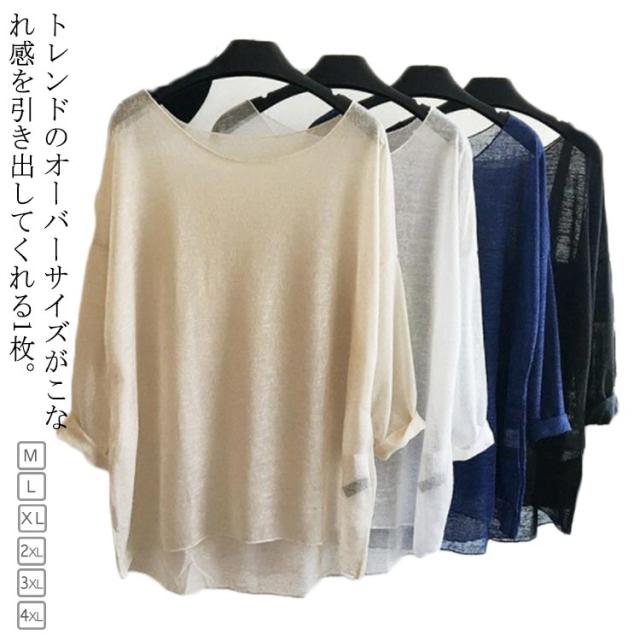 サマーニット M レディース XL 冷房対策 シースルー 透け感 シアートップス トップス ゆったり 薄手 プルオーバー オーバーサイズ ボートネック 紫外線対策 レディース 夏服 セクシー おしゃれ 体型カバー 長袖 L 春 2XL ニットセーター