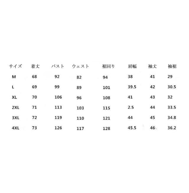 | サイズ | M L XL 2XL 3XL 4XL |