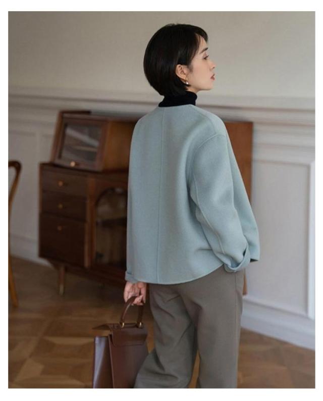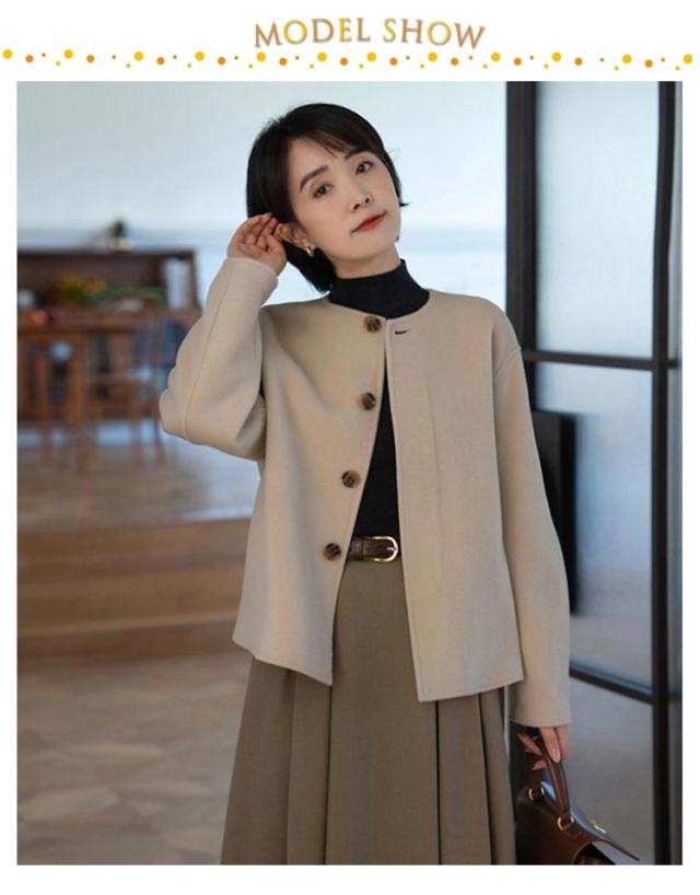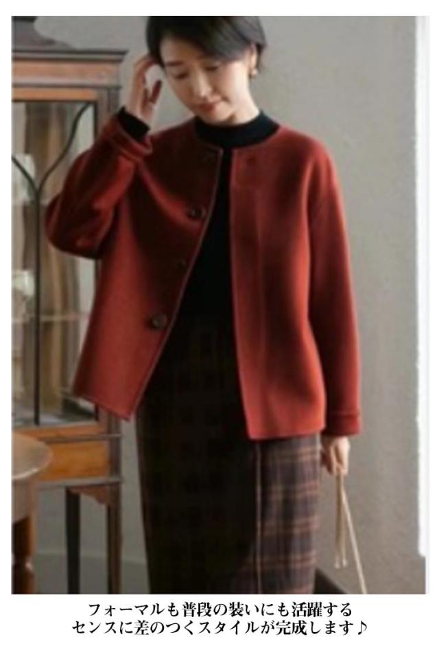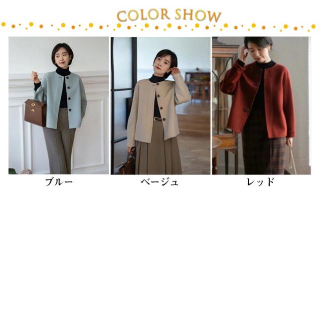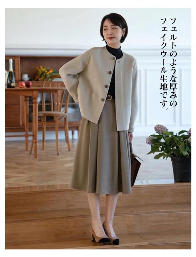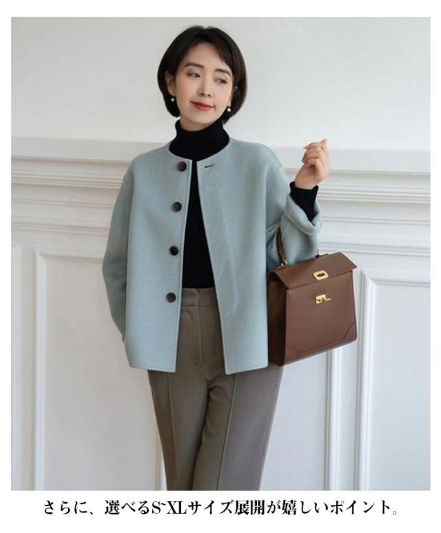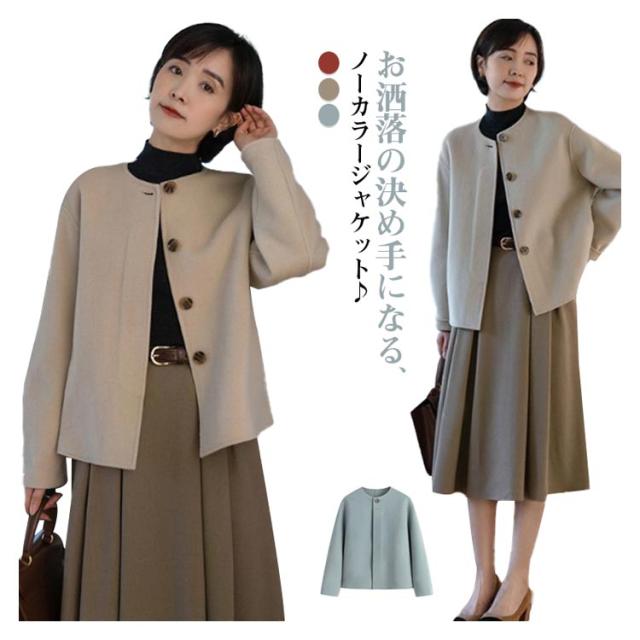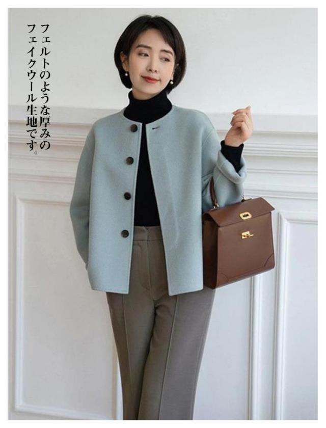 ショット丈 ジャケット ノーカラージャケット ノーカラー ウール調 ライトアウター 通勤 ジャケット 温かい ウールライク レディース ラシャコート 春コート アウター 丸首 ノーカラージャケット 韓国風 OL 大人 オフィス 結婚式 入学式
