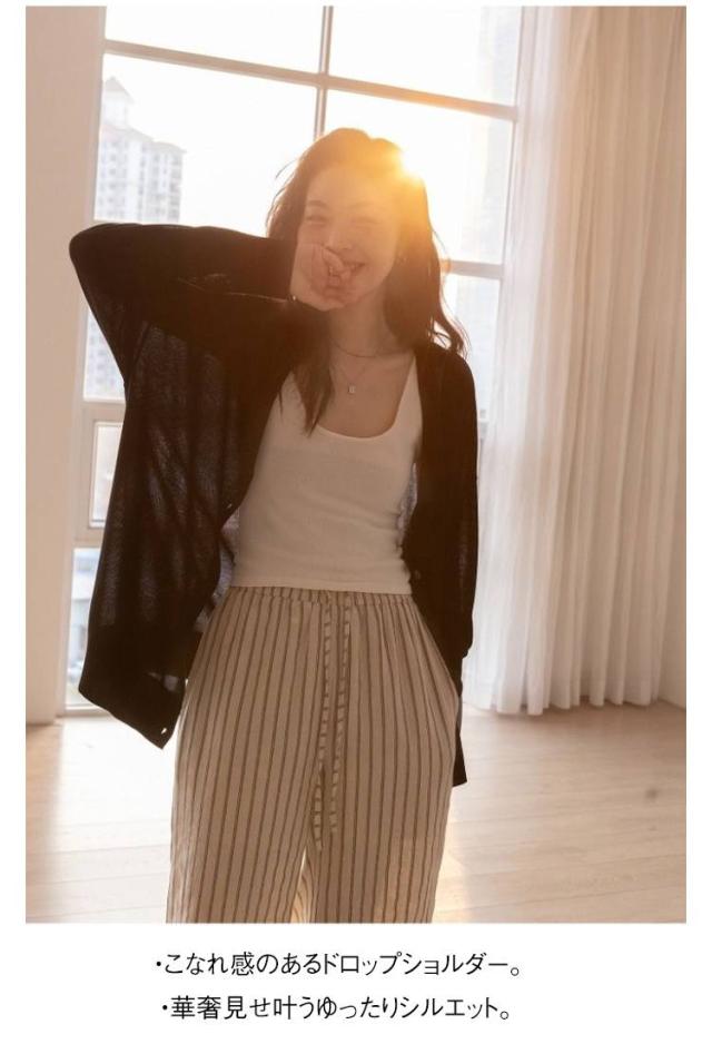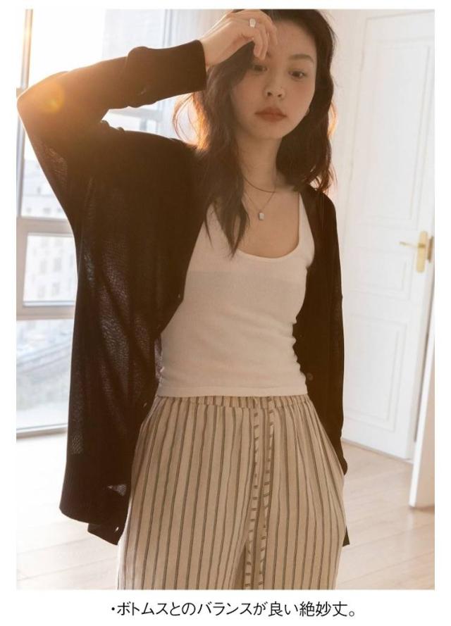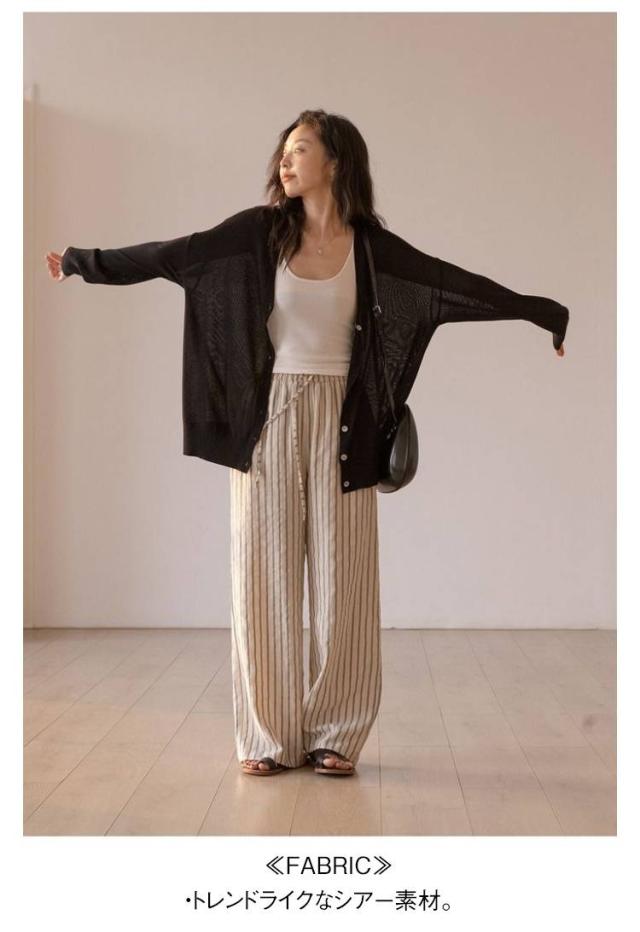 | 透けすぎないシアーが、抜け感を演出。 ヘルシーな雰囲気つくる『シアーニットカーディガン』 程よい肌見せで、シーズンムードをグッと上げてくれるシアーニットカーディガン。 アイテムを選ばずお洒落が叶う、一着は持っておきたい万能アイテム! ≪DETAIL≫ ・オンオフ着回せるシンプルなデザイン。 ・こなれ感のあるドロップショルダー。 ・華奢見せ叶うゆったりシルエット。 ・ボトムスとのバランスが良い絶妙丈。 ≪FABRIC≫ ・トレンドライクなシアー素材。 ・さらっと清涼感のある肌触り。 | |