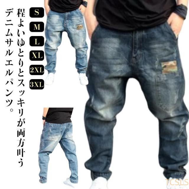 デニム ジーパン ジョガーパンツ 春 テーパード ゆったり デニムサルエル メンズ テーパードパンツ 秋 デニムパンツ ポケット付き ジーンズ Gパン 大きいサイズ パンツ ルーズ 夏 サルエルパンツ ブルー ストリート カジュアル 韓国 かっこいい