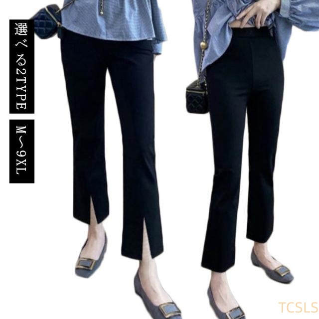レディース スキニー センタースリット 夏 パンツ スキニーパンツ 選べる2TYPE伸びストレッチスキニーパンツ レギンスパンツ シック ブラック 春 ブラック 体型カバー 美脚効果 大人可愛い スキニーパンツ スパッツ M?9XL スリット 大きいサイズ カジュアル 清楚 9分丈