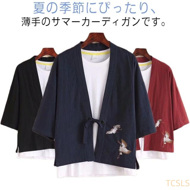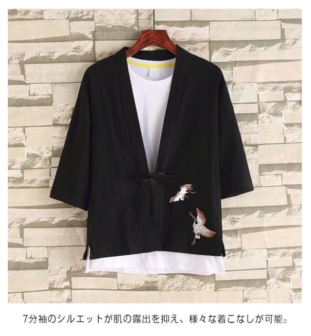 羽織 メンズ 和式 夏服 7分袖 甚平 和柄 シャツ 和柄 パーカー 和風 パーカー 羽織り 夏祭り 浴衣 ゆったり カーディガン トップス 和式 コート カジュアル 開襟シャツ 紫外線防止 夏服 和式パーカー 鳥柄 花火大会