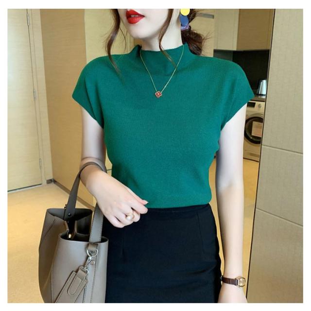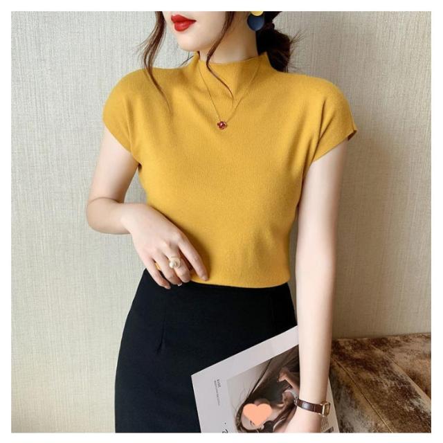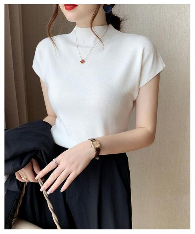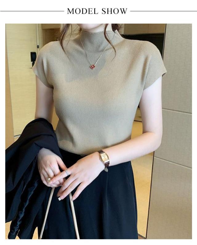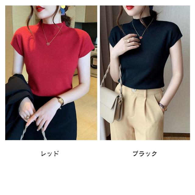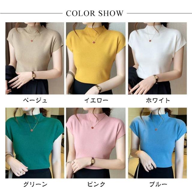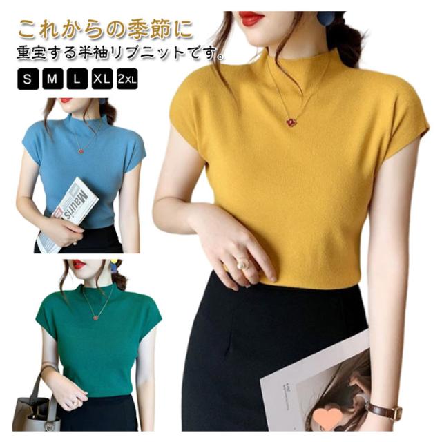 セーター ニット タートルネック ハイネック サマーニット トップス リブニット レディース 春夏 薄手 無地 着痩せ フレンチスリーブ きれいめ 伸縮性 カジュアル 半袖 お洒落 上品 通勤 オフィス