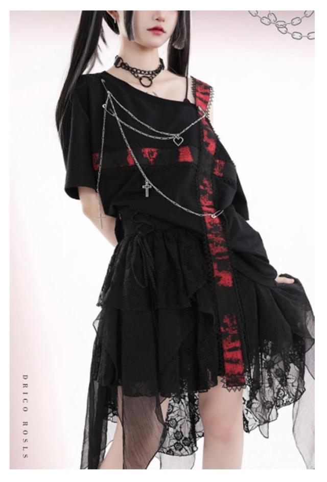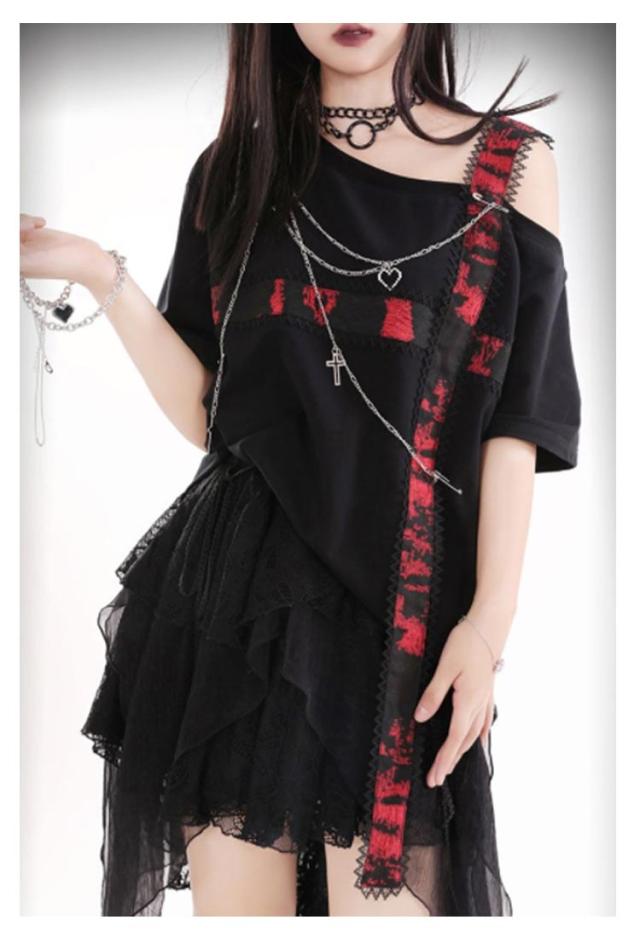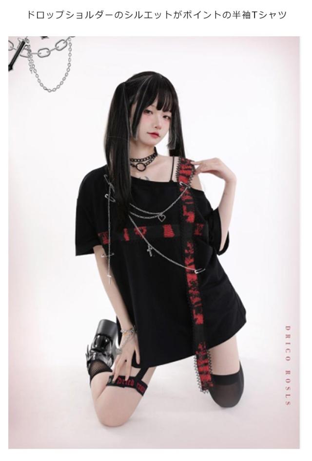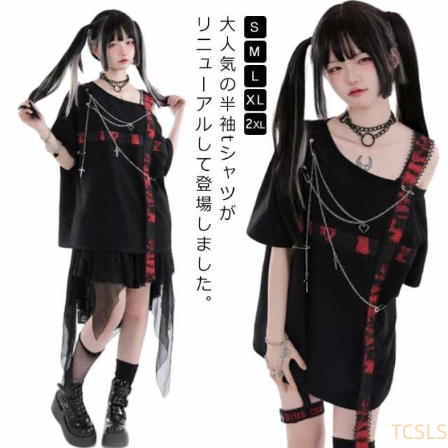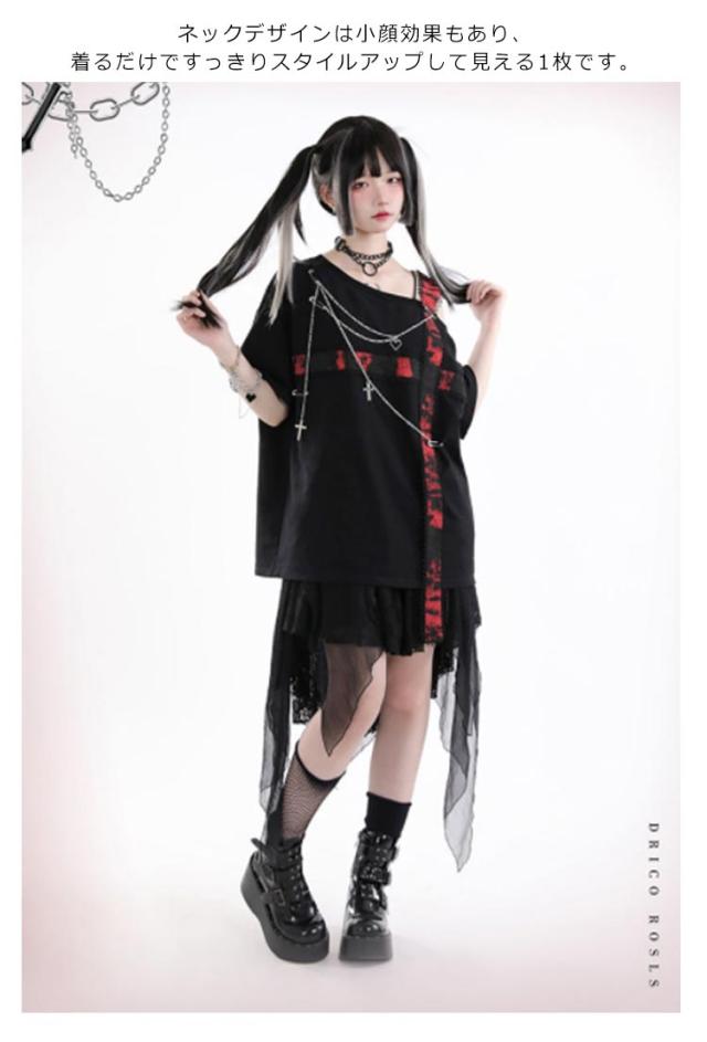 V系 半袖 Tシャツ レディース カットソー トップス タイト 病みかわいい 地雷 ゆったり ファッション ダンス衣装 シャツ 地雷系 着痩せ パンク オーバーサイズ ロック 原宿 量産型 原宿系 個性的 派手 大きいサイズ 薄手 ストレッチ ビジュアル系 ヴィジュアル系 体型カバー