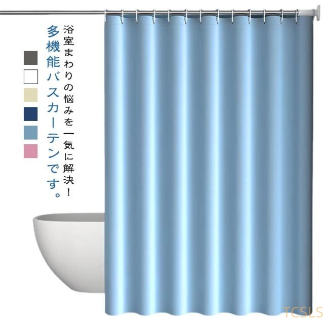 | 浴室まわりの悩みを一気に解決!多機能バスカーテンです。 厚手のPEVA素材で、光が通られるが中の人を見えなく、プライバシーを保護します。 防水性・防カビに優れ、熱や冷気を通しにくい。 浴室のシャワーカーテンとしてはもちろん、ちょっとした目かくしや、暖房、冷房の効率アップにも。 浴室カーテンを使用し、床に水が飛び散らないようにするとともに、バスルームの湿気を外に逃がさない保温効果があります。 カーテンリング付属しているので、カーテンポールに引っ掛けるだけで取付できます。 脱衣所やシャワースペースの目隠し・間仕切りにも活躍します。 | |